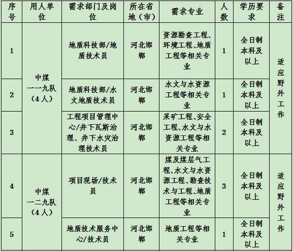 根據(jù)《中國(guó)煤炭地質(zhì)總局2023年度應(yīng)屆高校畢業(yè)生招聘公告》相關(guān)要求,結(jié)合中煤一局集團(tuán)有限公司發(fā)展需要,現(xiàn)向社會(huì)公開(kāi)招聘2023年應(yīng)屆高校畢業(yè)生,有關(guān)事項(xiàng)公告如下: